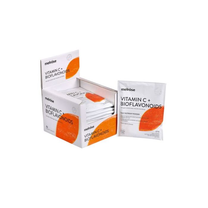 Melrose Vitamin C + Bioflavonoids is an easy to use nutrient powder that contains a unique blend of antioxidants including rutin and hesperidin. Vitamin C is an essential water-soluble vitamin that the body cannot make or store, so it is important that an adequate amount is consumed daily through the diet.
