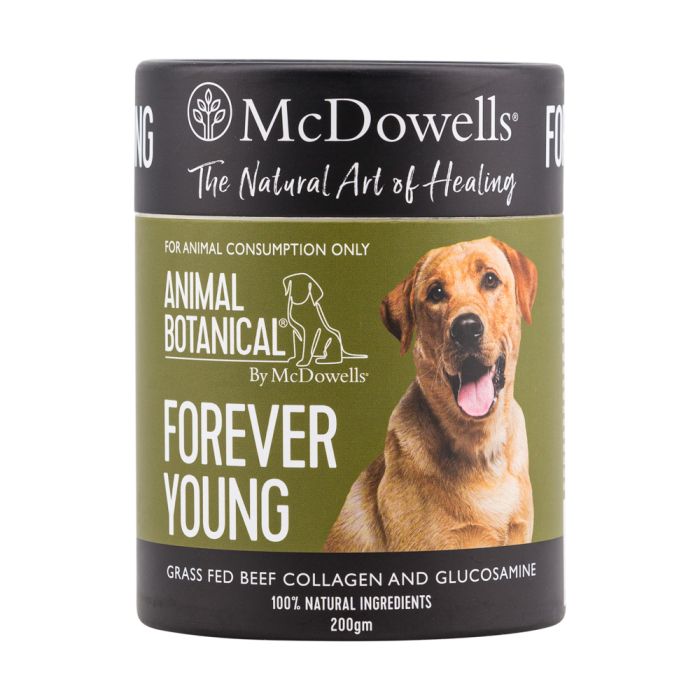 The Animal Botanical Forever Young Supplement collagen hydrolysate is made from beef collagen, which is enzyme treated to improve bioavailability. Our Forever Young Supplement is specially designed to assist with your furry, or not so furry friend’s health and happiness.