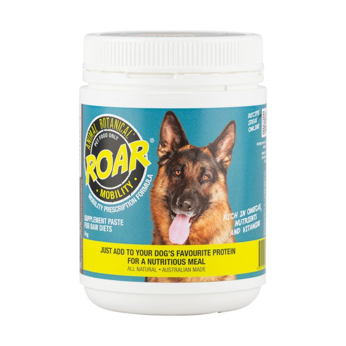 ROAR MOBILITY supplement paste for dogs has been designed to mix with raw meat to provided additional nutrients, minerals and omegas essential for a healthy animal. For a varied and complete diet, we recommend supplementing your dogs’ diet with other natural ingredients, such as raw bones, vegetables and fruits.