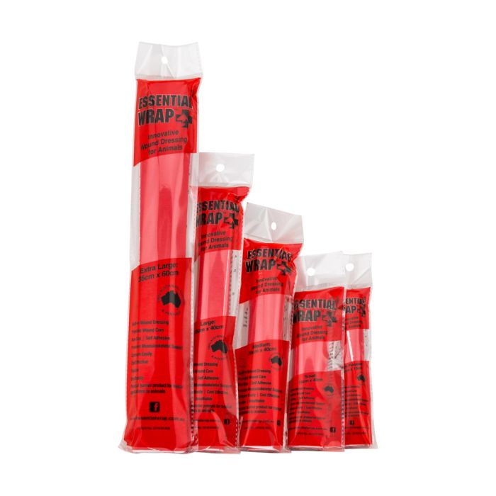Essential Wrap is a wound dressing bandage for horses, dogs and other animals. It is non-slip, inexpensive and easy to use. Our innovative wound dressing can be applied to difficult and often impossible areas of an animal and help to overcome common issues associated with traditional bandaging, such as pinched tendons, restricted movement and bandage burns.Â