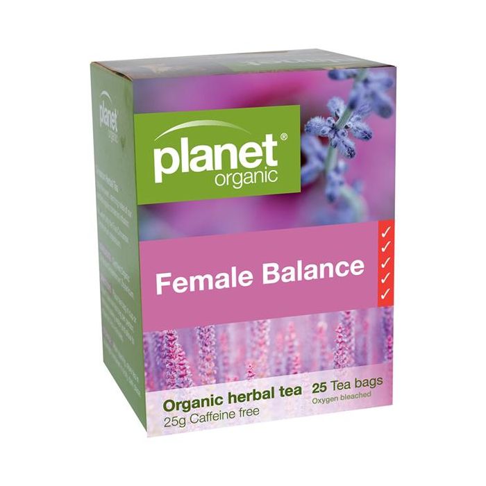 Planet Organic Female Balance Herbal Tea provides nutrifying qualities and natural clarity through the synergy of a carefully balanced blend of pure certified organic herbs.