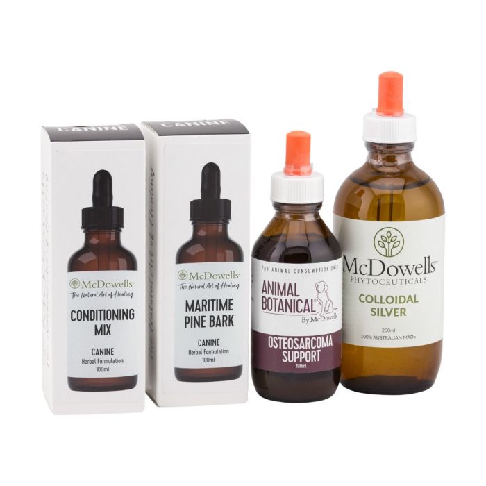 Our Osteosarcoma Support program for dogs contains 4 products to use together;