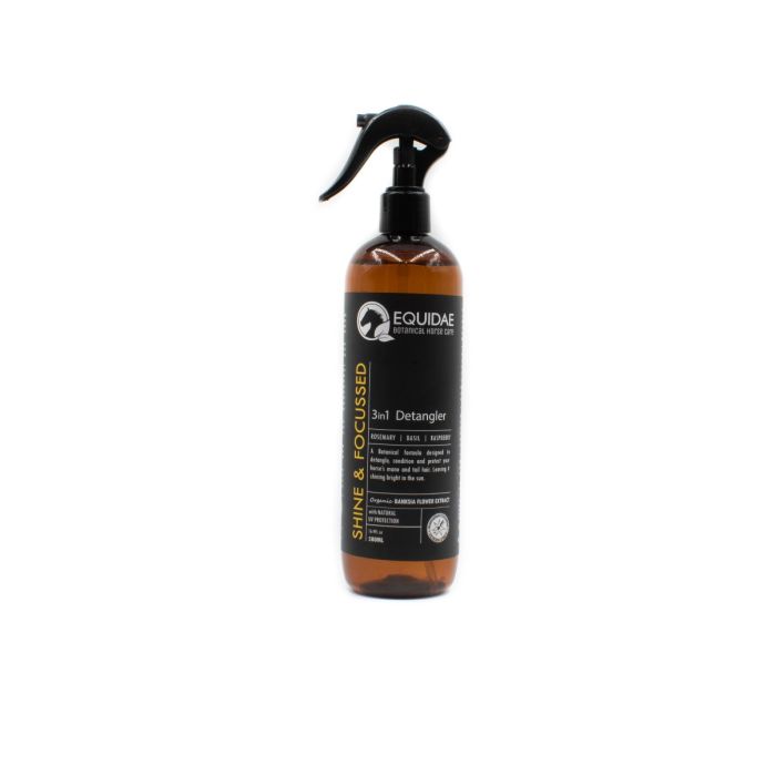 SHINE & FOCUSSED 3in1 Detangler is formulated with luxurious bioactive plant-derived ingredients, high in antioxidants, vitamins and minerals, to provide volume, hydration, UV protection, shine and tangle free mane and tail hair.