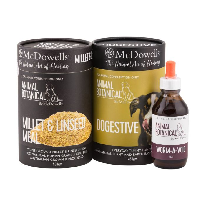 The McDowells worming program utilises bitter and astringent herbs, which tone up the gut wall leaving the gut in better condition to manage its own parasite population. The combination of products in this program are traditionally used to make the environment unpleasant for intestinal parasites to thrive, whilst encouraging a healthy gut and microbiota population